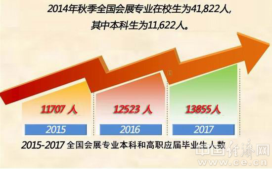 根據(jù)最新統(tǒng)計(jì),2014年我國(guó)會(huì)展教育保持較快發(fā)展勢(shì)頭,全國(guó)招收會(huì)展新生14293人,較上年增加10.2%。新生入學(xué)后,全國(guó)會(huì)展專業(yè)在校生規(guī)模達(dá)41822人,創(chuàng)歷史最高水平。2015-2017會(huì)展專業(yè)