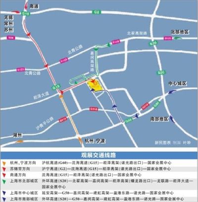 南通方向:沈海高速(G15)—崧澤高架(諸光路出口)—國家會展中心