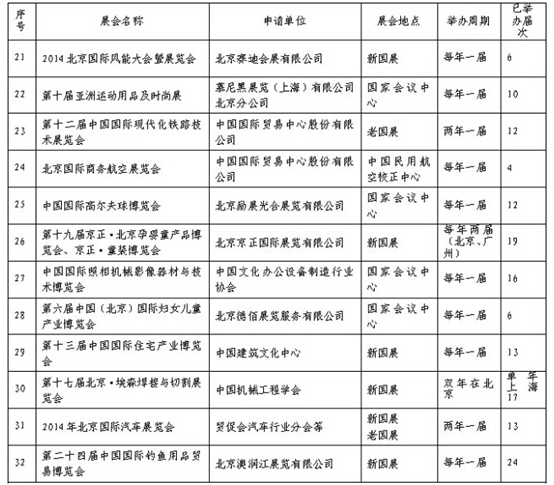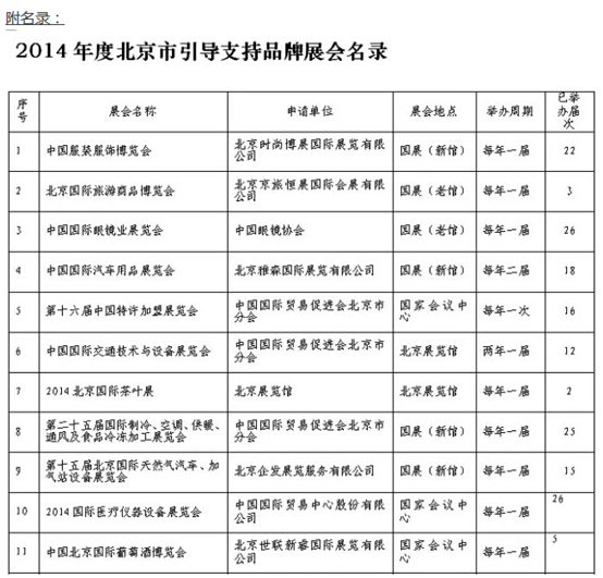 2014年度北京市引導(dǎo)支持品牌展會揭曉