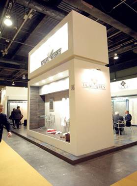 3、殘缺空間。正因?yàn)檎箞?chǎng)空間面積有限,在傳統(tǒng)意念中,同一組攤位的空間形式是完整而統(tǒng)一的,為了打破這種面積的束縛,如果大膽地運(yùn)用殘缺空間,就能無限延展空間。所謂殘缺空間,就是不完整的封閉空間,讓觀眾在意識(shí)到空間的限定時(shí),又感覺到還未結(jié)束,有種向鄰近空間拓展、滲透的魔力。