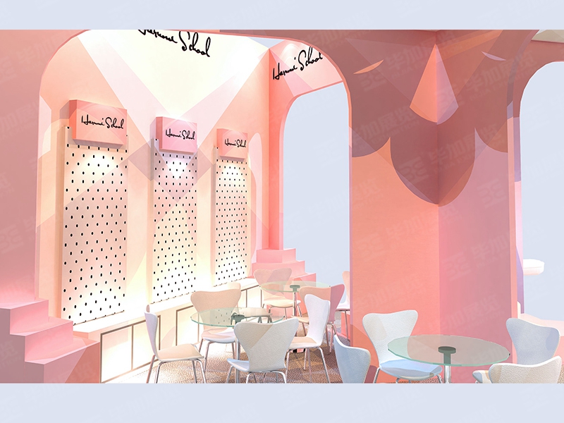 以粉紅色為主調(diào),著重突出品牌和產(chǎn)品的展示,使整個展位主題鮮明又行云流水。